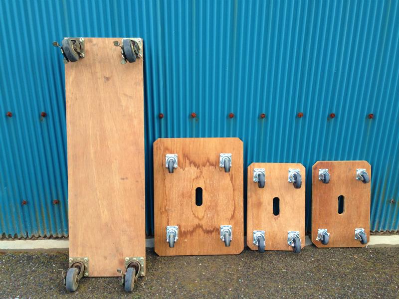 ポリバケツのような小さなものからピアノのような大きなものまで対応可能な自由度が高い木製平台車です。