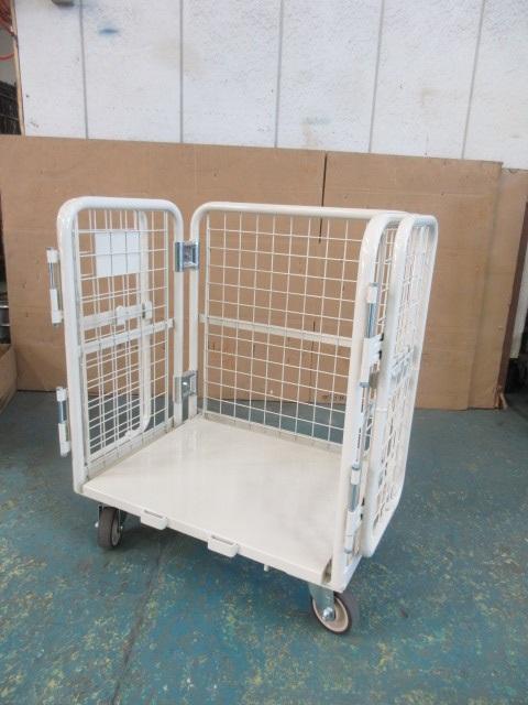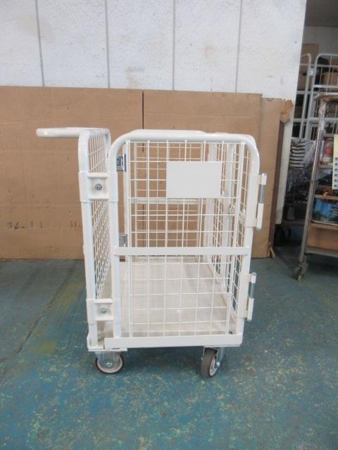 側面から出し入れができる仕様を希望されていたためメッシュ貼りカゴ台車仕様にてご提案させていただき、