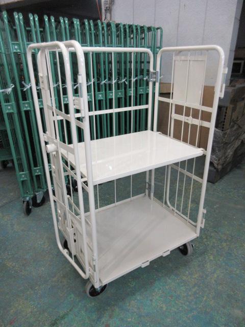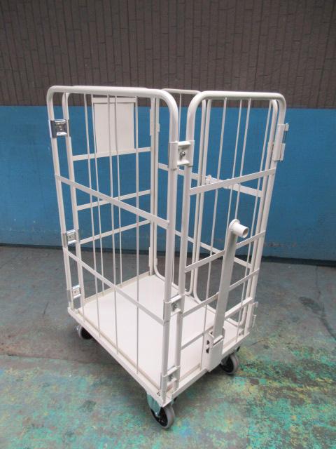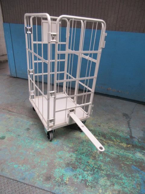 オーダー製作事例のL形観音扉付きカゴ台車牽引金具付をご紹介!