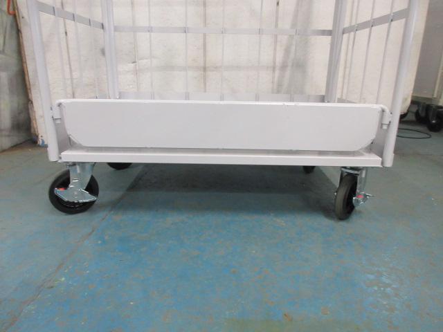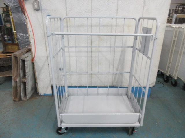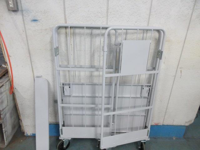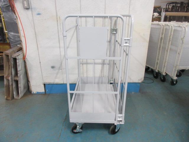 【内装解体現場向け】破材こぼれ防止仕様 特注カゴ台車|三面鉄板貼付け・両面折り畳み対応