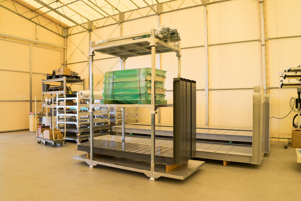 製品の保管だけでなく、荷物を積載したまま車両に収めることができるため輸送時にも利用できます。