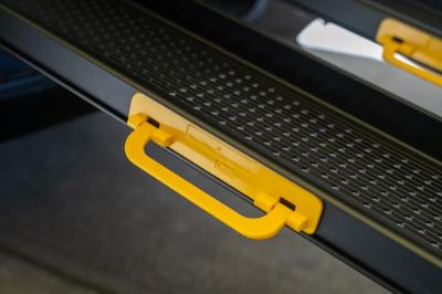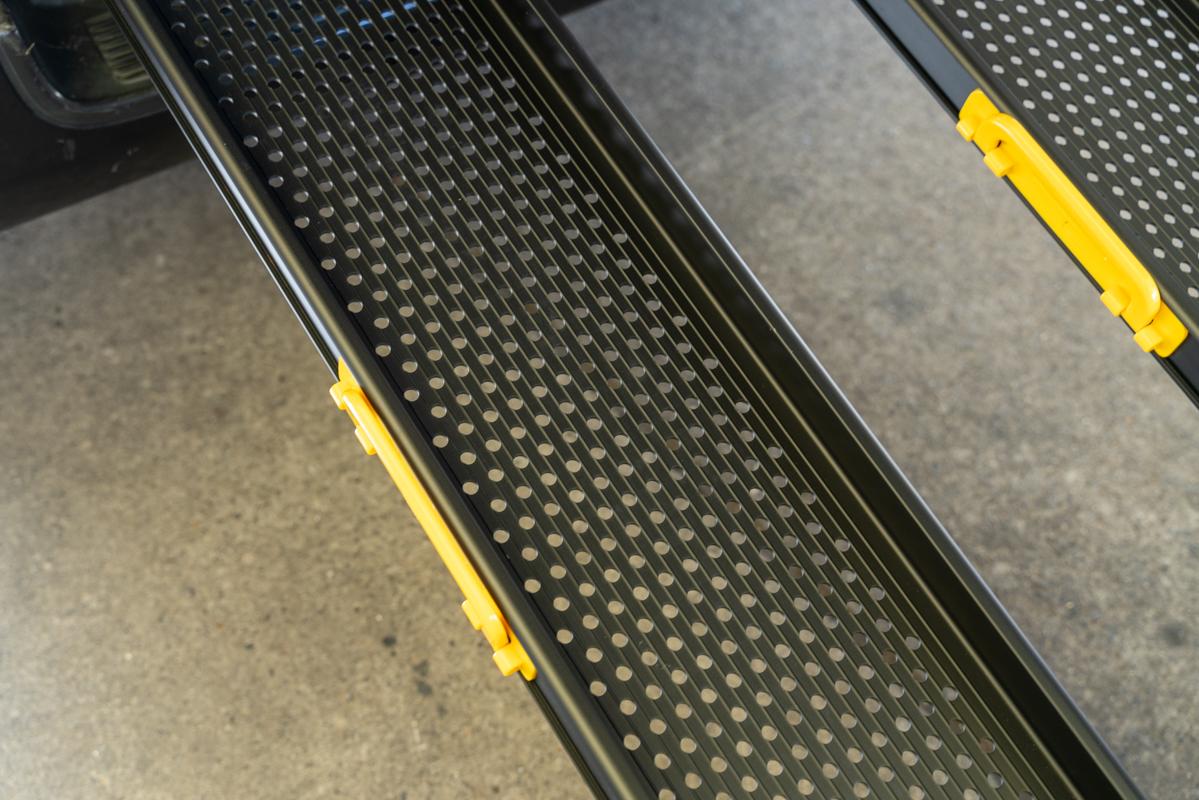 スロープには滑り止めマットが標準装備されているため、カゴ台車に載せた大切な機材を安全に積み下ろしすることが可能です。