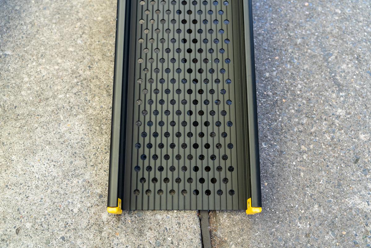 本製品は通常規格のスロープと異なり、安全対策として、立ち上がり4.5cmのサイドガードを標準装備。