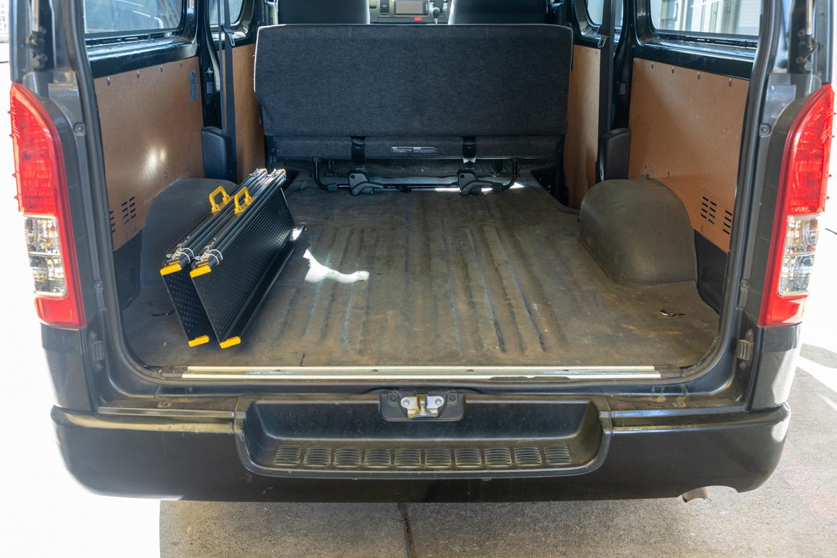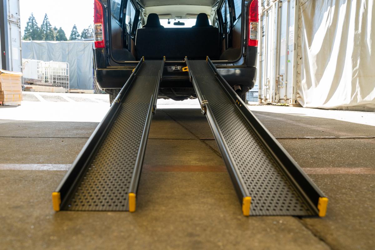 「カゴ台車に機材を載せたままハイエースなどの車から降ろしたい」