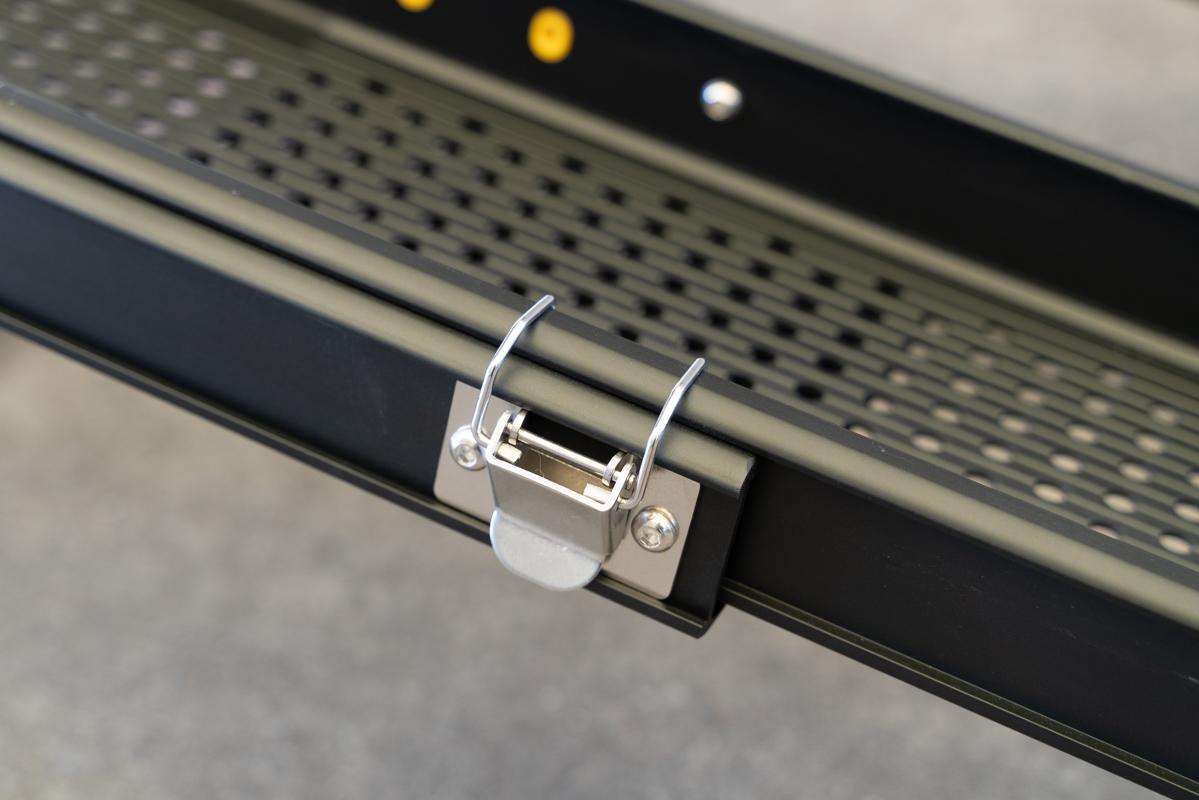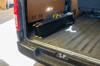 現場の声にお応えし、本体は軽量なアルミ仕様で自重わずか18kg(1本9kg)を実現!一人でも負担なく持ち運び、ハイエースやバンタイプの荷台に設置が可能です。