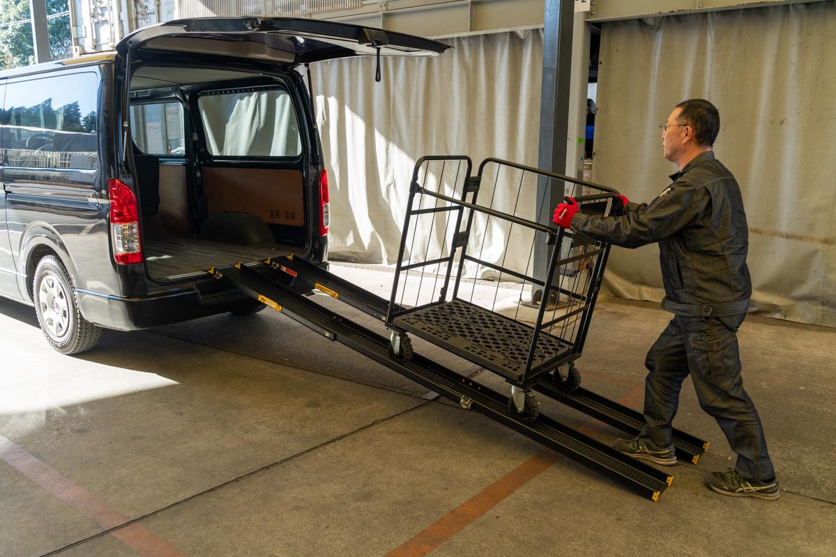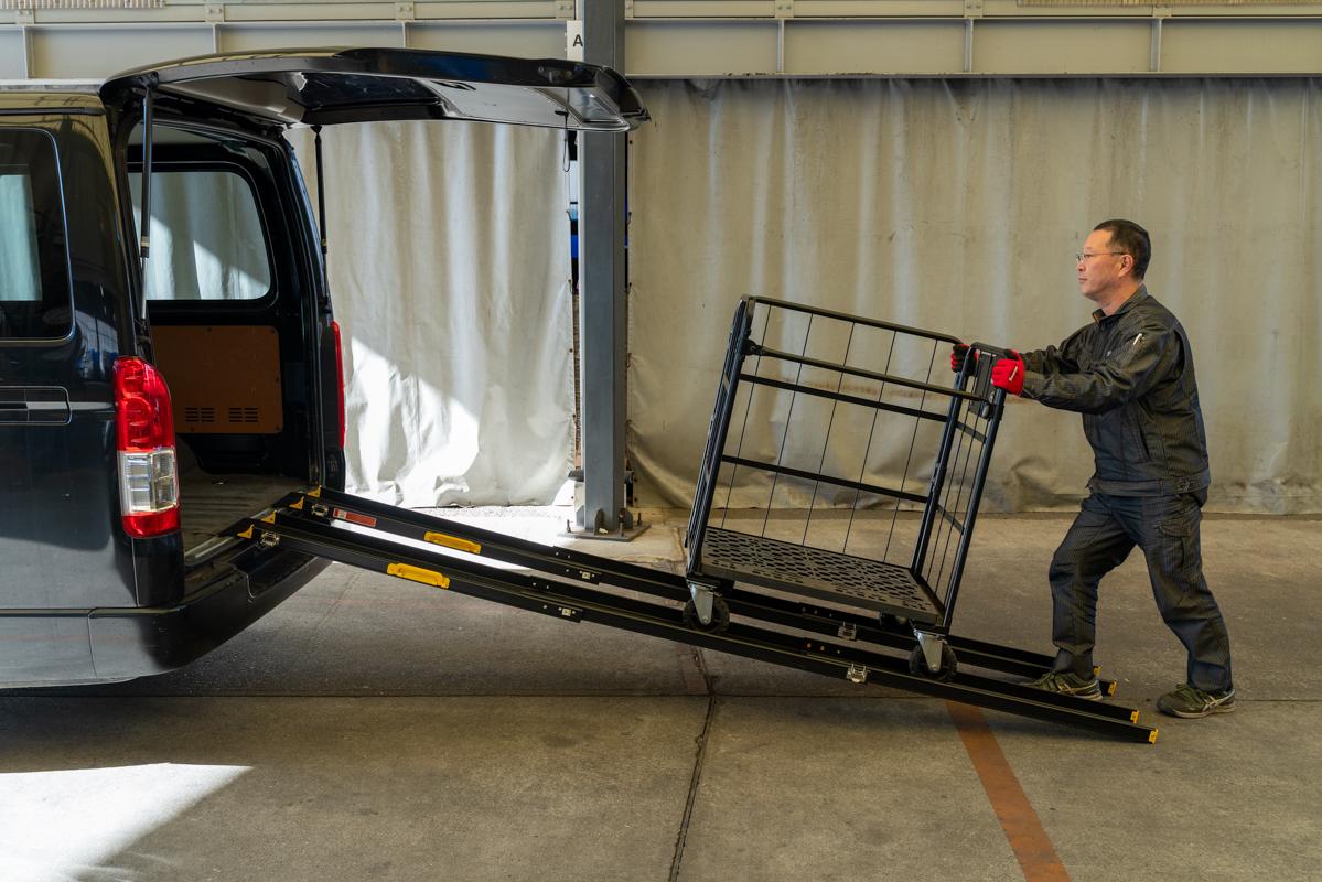 【2026年春販売/予約受付中】3段伸縮式 カゴ台車用スロープ【ハイエース/バン車両】